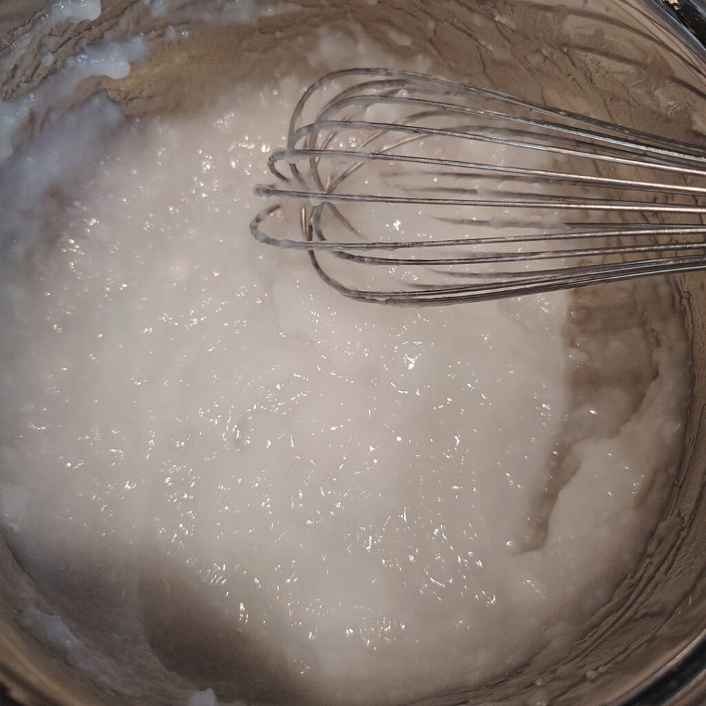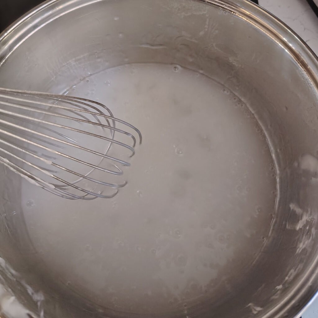 You want to begin by making your gel, which is very simple. Add some cornstarch (USA) or Cornflower (UK) to water and gently heat.