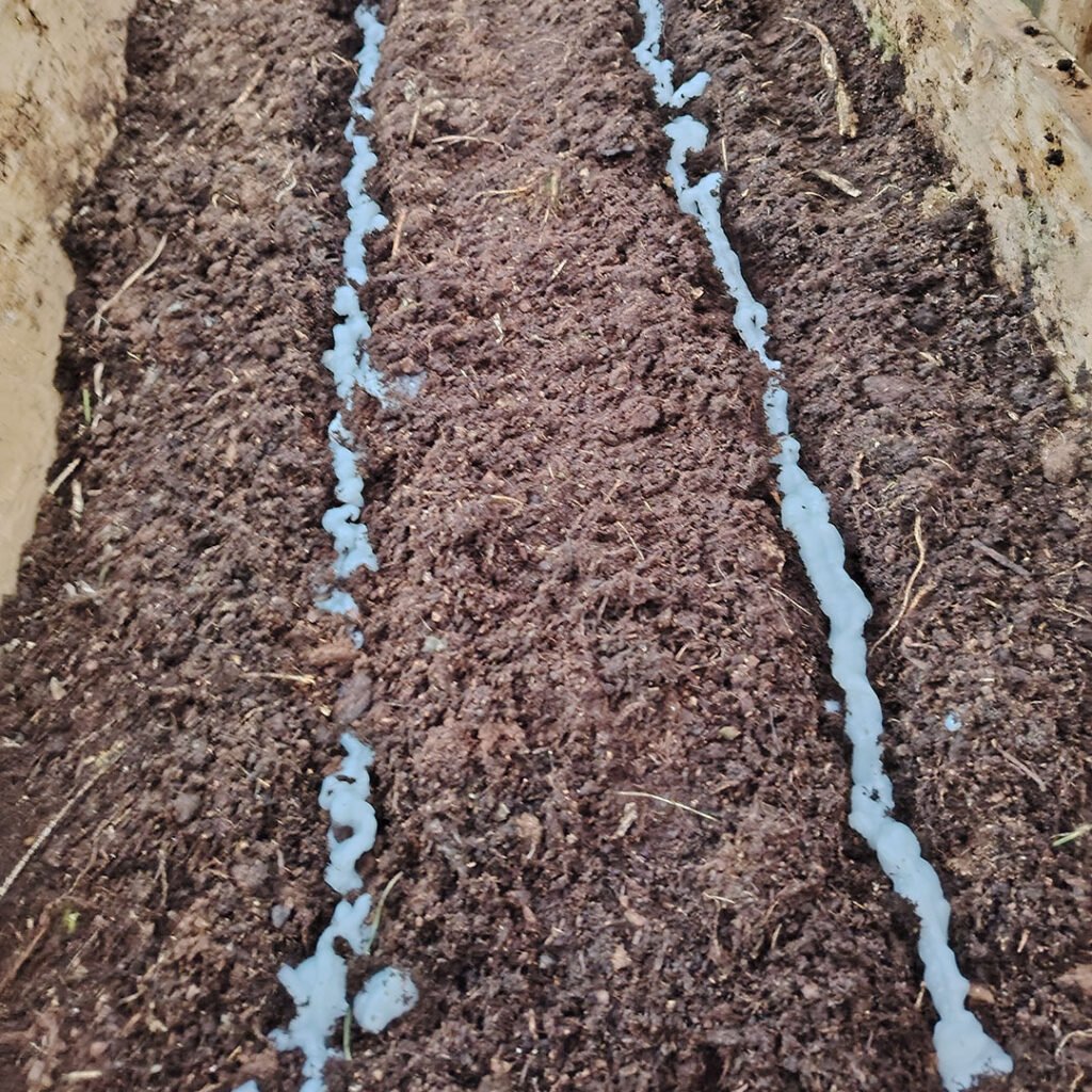 Then simply squirt your mixture into your trench, just like you were icing a cake.