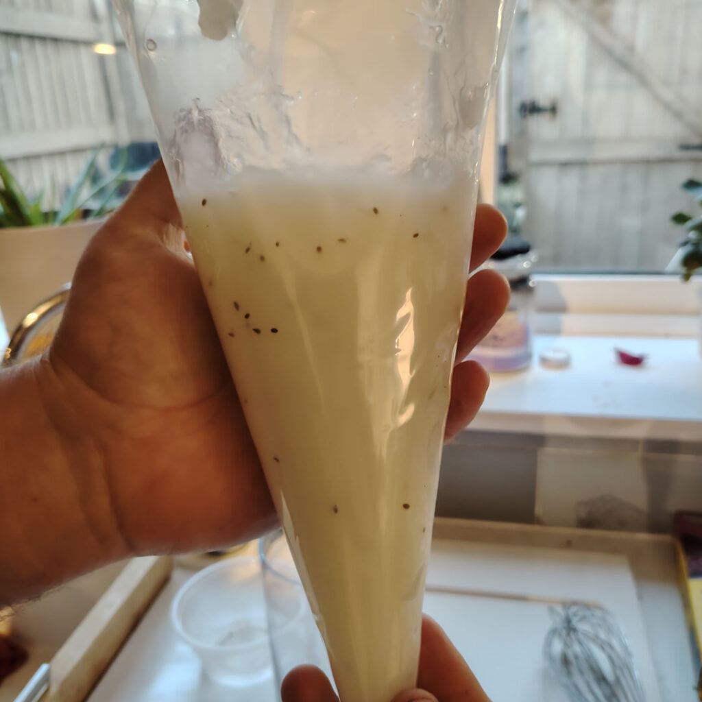 You can use any sort of bag for this but we had piping bags so why not use the real deal!
