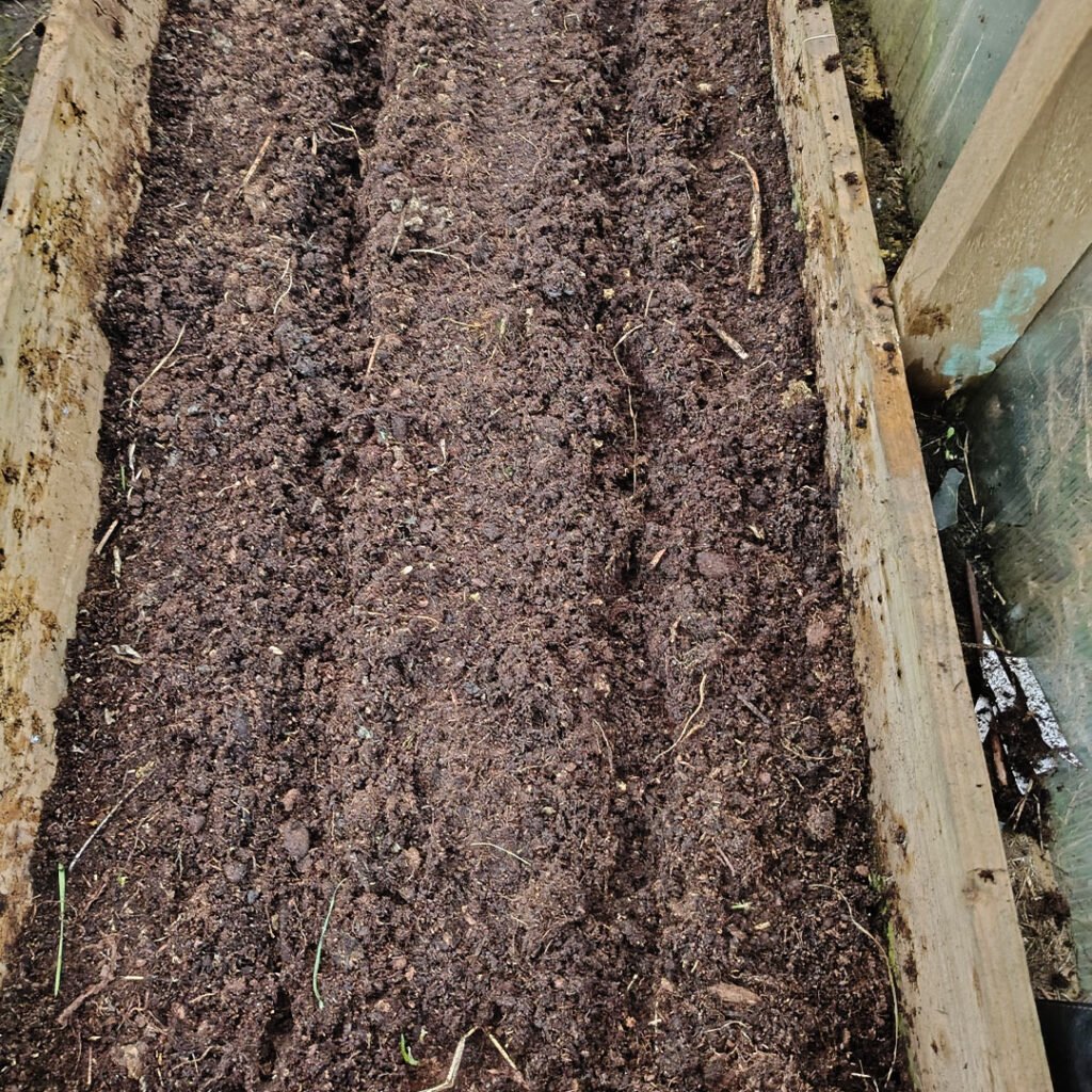 I made two shallow trenches in the bed I would be planting my carrots in.