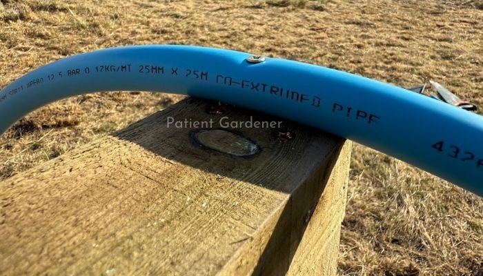 You can cut the pipe using a handsaw, angle grinder, hacksaw, garden shears, or circular saw. We used 25mm alkathine pipe.