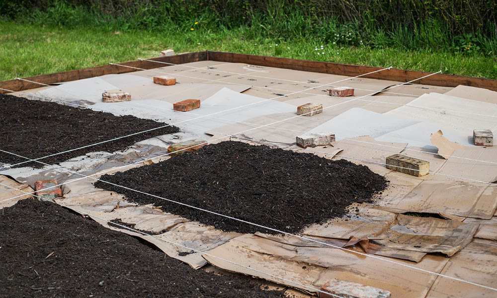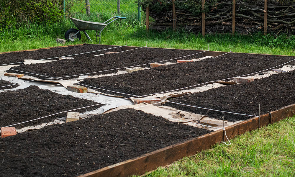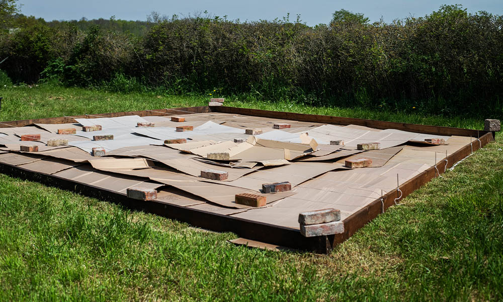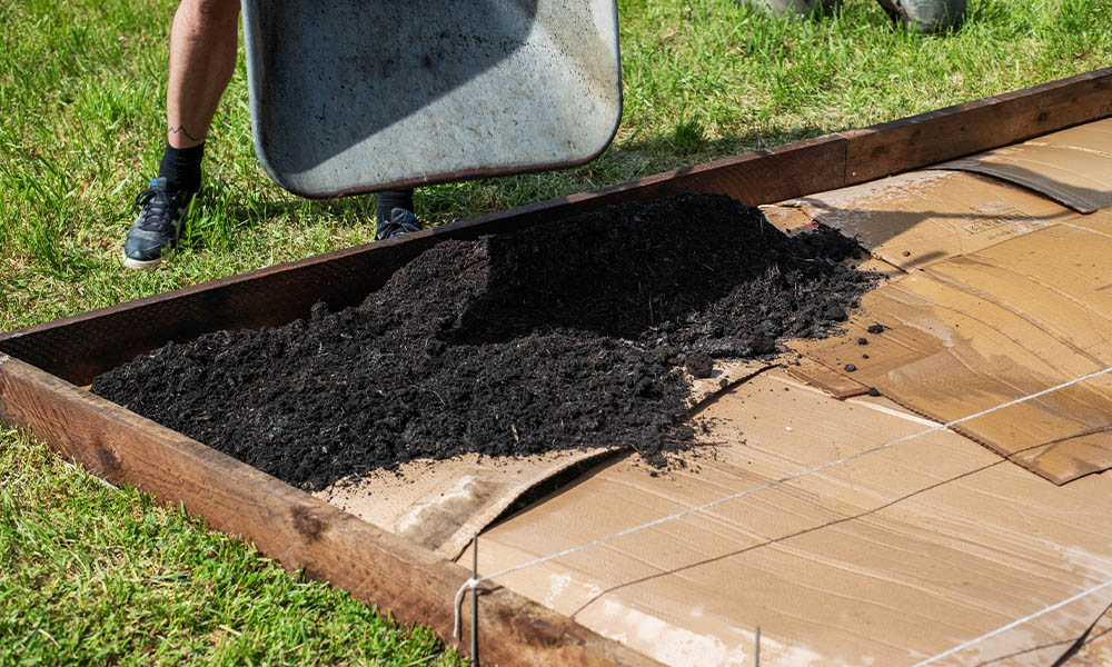 Alternatively, if you have time to plan ahead, you can put down a cover to kill off as much of the grass and weeds as possible before creating your bed.